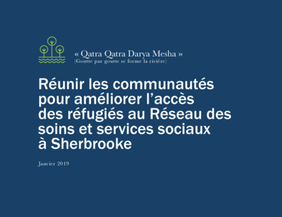 Un projet de recherche-action (Projet #1, 2017-18) financé par Réseau1 Québec avait pour objectif de répondre au défi de l’accès au réseau des soins et services sociaux des réfugiés dans la ville cible, en renforçant le maillage des acteurs et des services impliqués auprès de cette population, et en accompagnant la réflexion sur des propositions d’interventions de proximité intégrées, pérennes et basées sur les besoins de la communauté. Les résultats de cette recherche-action ont été dévoilés à la communauté en juin 2018 à l’occasion d’une journée d’échange et de transfert de connaissances co-construites avec les partenaires impliqués dans le projet. Cette journée fut synthétisée dans un rapport intitulé « Qatra Qatra Darya Mesha » (Goutte à goutte se forme la rivière, Dari, Proverbe afghan). Cet évènement clôtura la recherche-action avec la participation de près de 80 personnes dont des personnes réfugiées, des député·es provinciaux et fédéraux et plusieurs actrices et acteurs municipaux et institutionnels en santé et immigration.